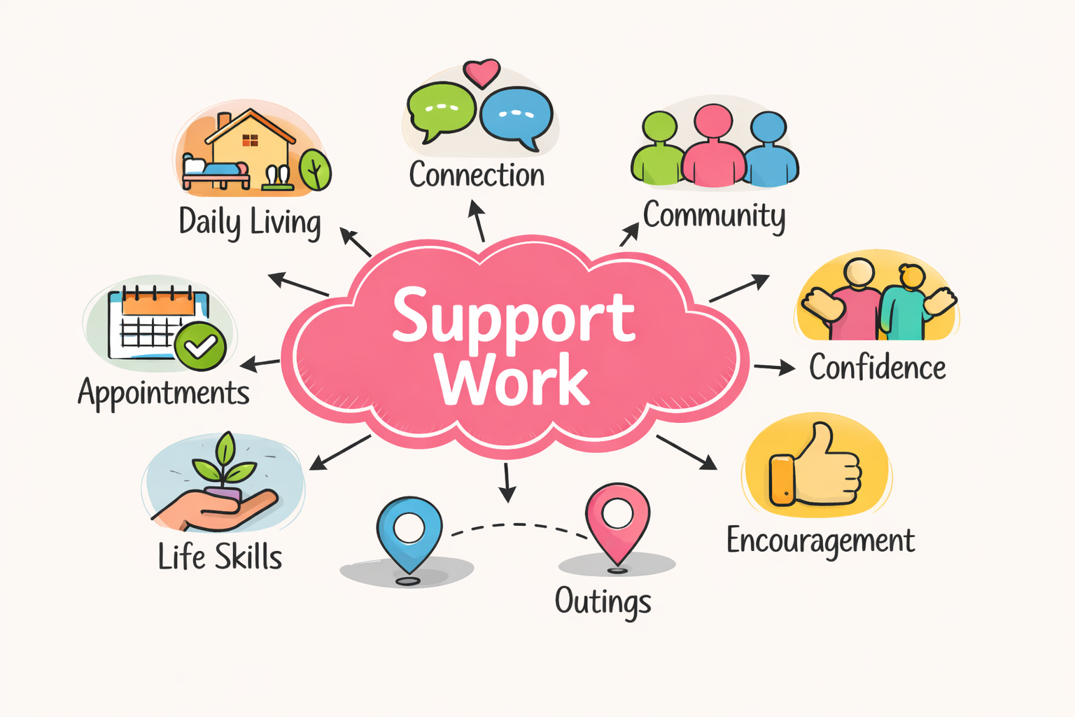 NDIS support work is typically funded through your NDIS plan under Core Supports - Assistance with Daily Life or Core Supports - Social and Community Participation.